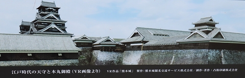 江戸時代の天守と本丸御殿(VR画像)。
