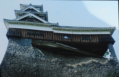 震災直後の天守の写真。