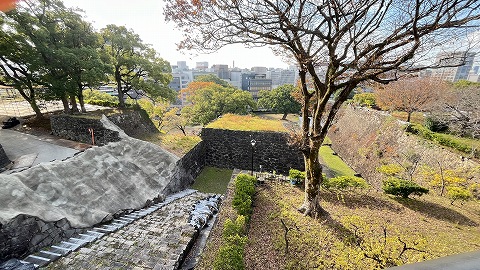 南に見える竹の丸から飯田丸に向かって6回折れ曲がる通路は、熊本城の防御性の高さを示す場所として知られています。