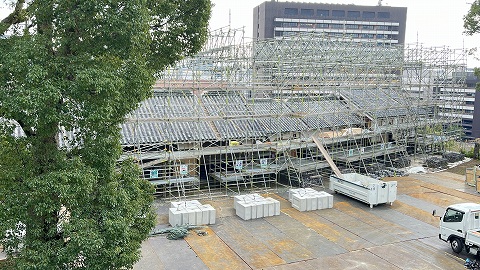 国の重要文化財の宇土櫓が解体復旧中です。