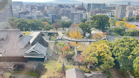 熊本城は別名「銀杏城(ぎんなんじょう)」と呼ばれます。由来となった天守近くの大イチョウが見頃でした。