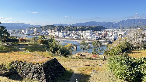 手前は二の丸跡で、広場になっています。二の丸は、江戸時代を通じて上級家臣の屋敷が建ち並んでいた場所です。