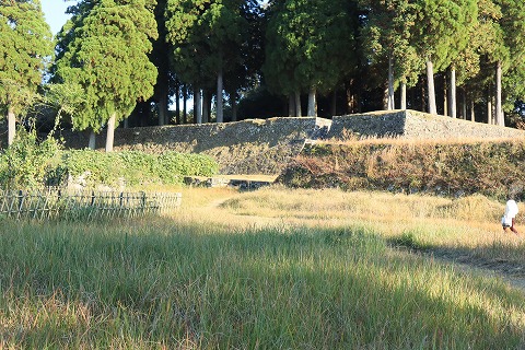 手前の広場は西外曲輪の大台所や御厩(おうまや)だった場所です。