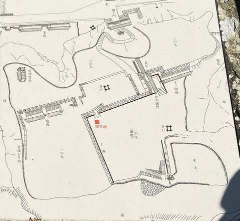 現在地と書かれている所には、御殿から三の丸へ下る埋門がありました。