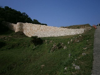 現在は神社と小学校になっており、遺構は写真の城壁の一部しか残っていません。 |