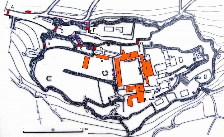 発掘調査の結果、岩盤の上に14世紀〜15世紀始め頃の布積みの城壁が見つかったそうです。