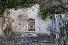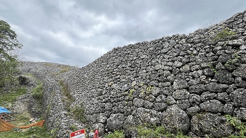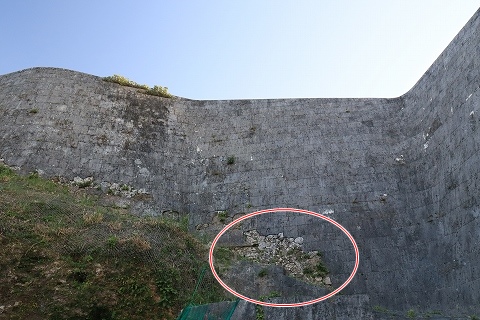 城の石垣は一番上の部分で、下の要塞のような部分は「浦添ようどれ」という琉球王国の陵墓の石垣の囲いです。 下の写真は「ようどれ」内部にある琉球王国第二尚氏王統の第7代国王「尚寧王陵」。