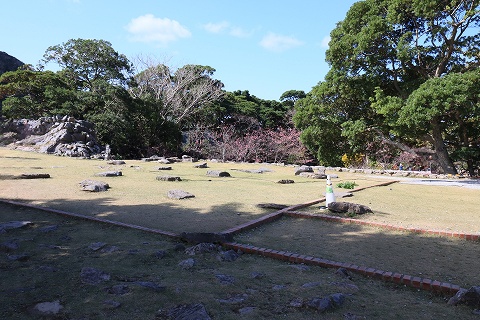 戦後、米軍が建築材料として持ち出し破壊され、かろうじて一の郭の石門と拝所だけが残っています。 |