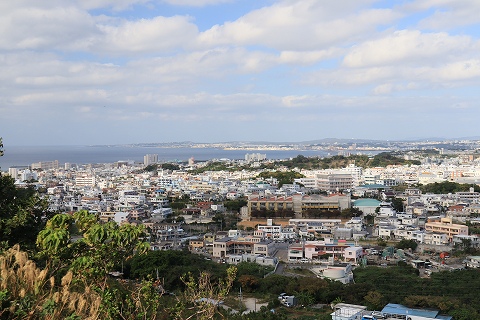 城の展望台からは浦添の街がよく見えます。そのため日本軍の防衛拠点になったのでしょう。 |